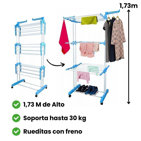- Gran capacidad: soporta hasta 30 kg de ropa distribuidos en 6 bandejas.